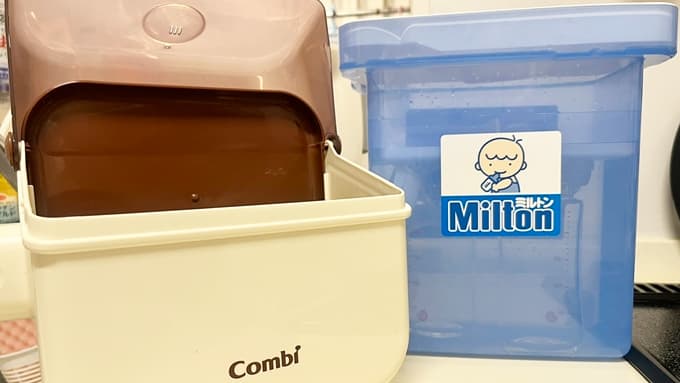 解決策として哺乳瓶を増やすか悩んでいましたが、試供品でもらったミルトン溶液を自宅にあるクーラーボックスで使ってみたところ、それが快適すぎて。